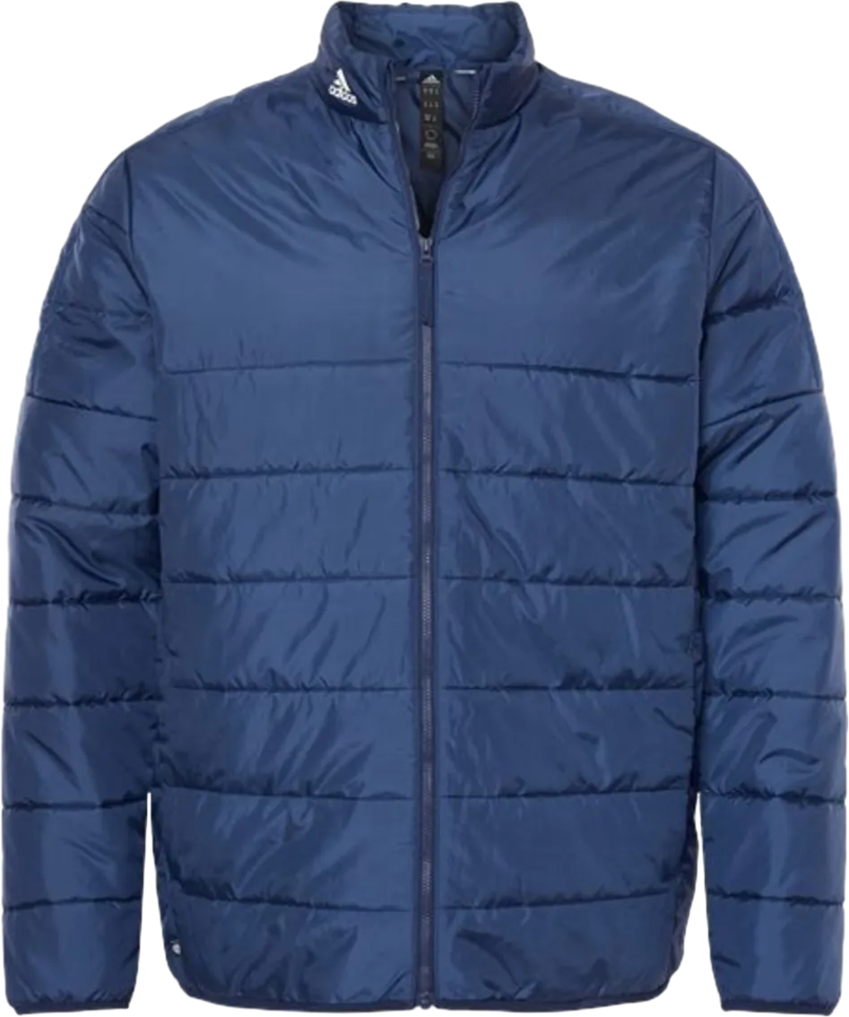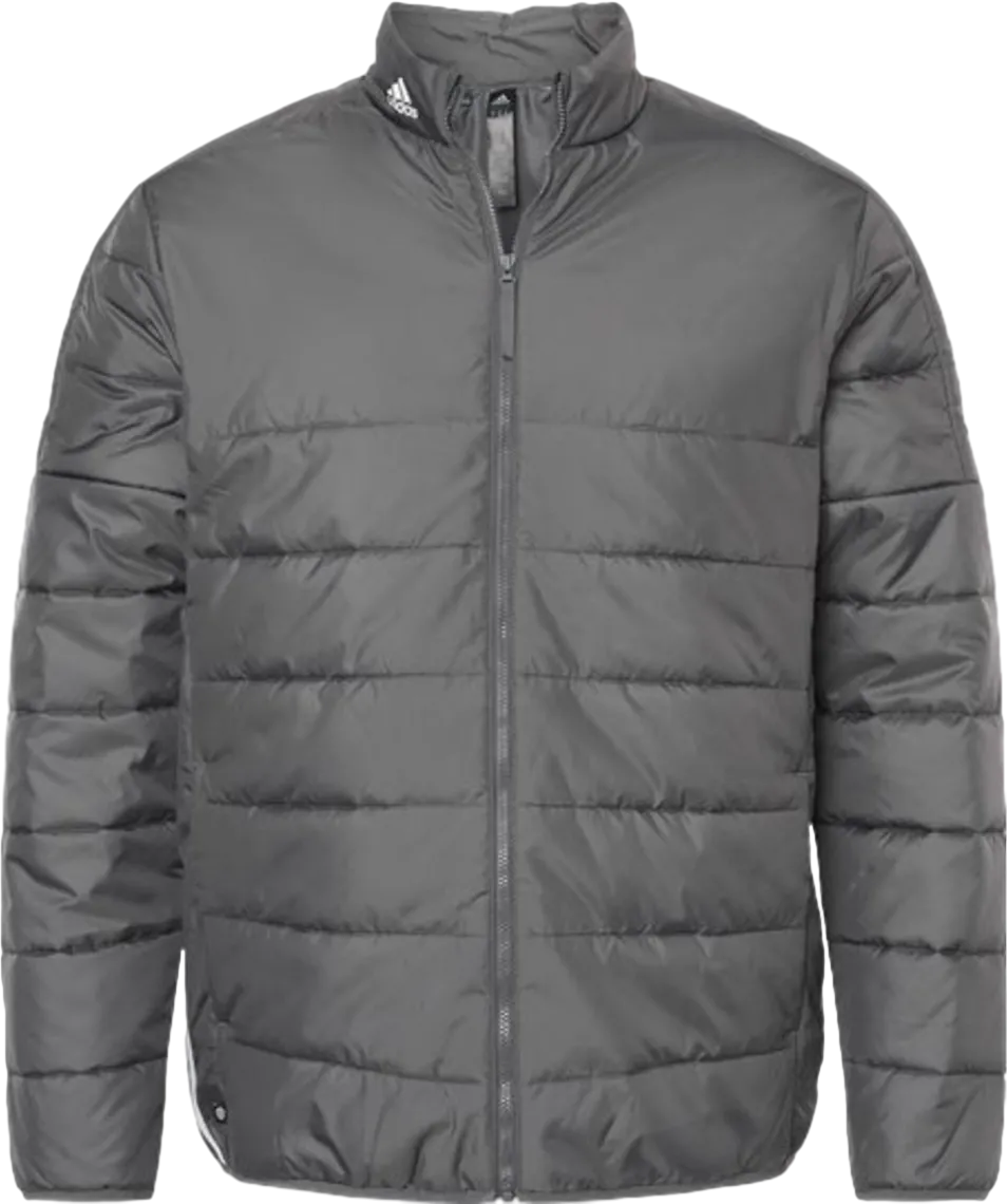 2 oz./yd² (US), 3.3 oz./L yd (CA), 100% recycled polyester 3.4 oz./yd², 100% recycled polyester synthetic fill Baffle construction 3-stripes on sides Contrast adidas logo on right collar