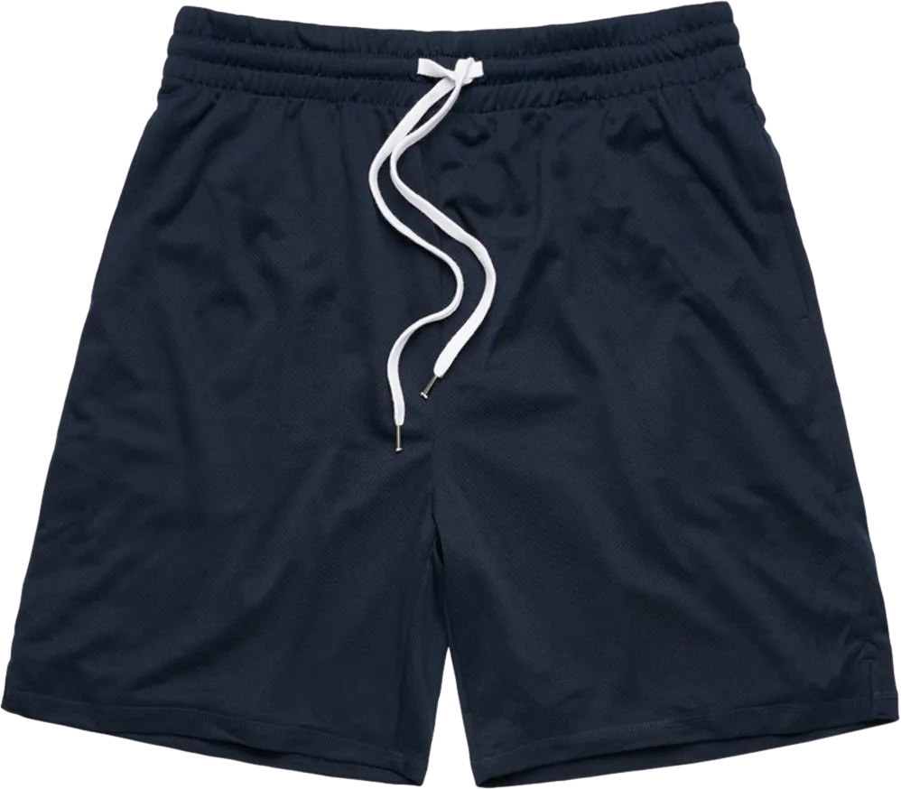 Regular Light weight, 7.1 oz, 100% polyester Perforated double-layer fabric shorts, on-seam side pockets, side splits at hem, elastic waistband, white drawcord with metal tips, preshrunk to minimise shrinkage