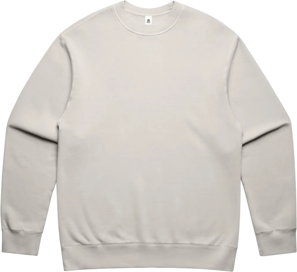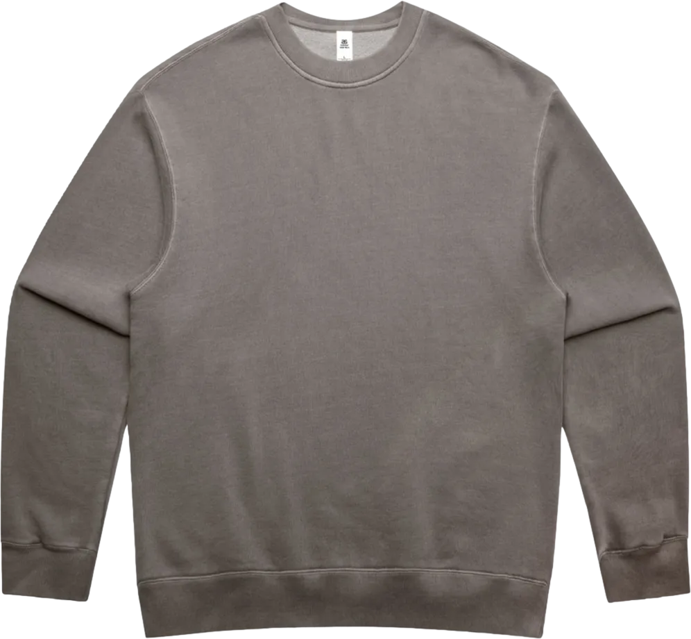 Relaxed Mid weight, 9.4 oz, 80% cotton 20% recycled polyester CVC fleece Pre-shrunk to minimise shrinkage, pullover crew, drop shoulder, crew neck, garment dyed, sleeve cuff ribbing