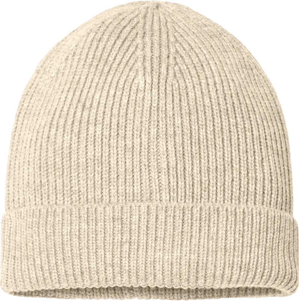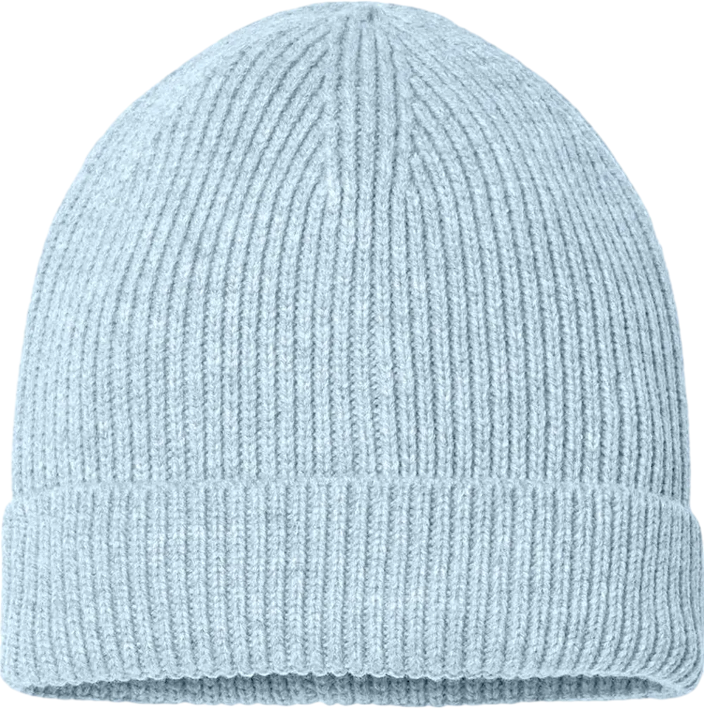 50/50 recycled polyester/acrylic 11” Knit with 2 1/2" pre-established cuff Narrow rib knit Product traceability via QR code label Global Recycled Standard