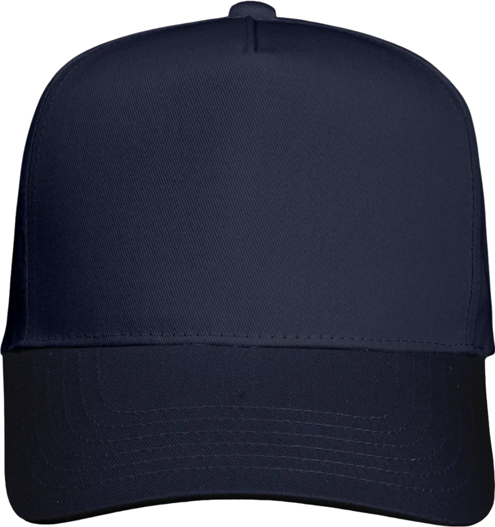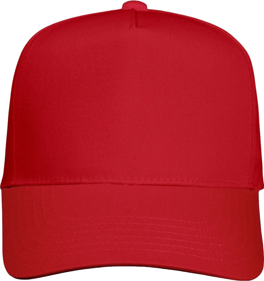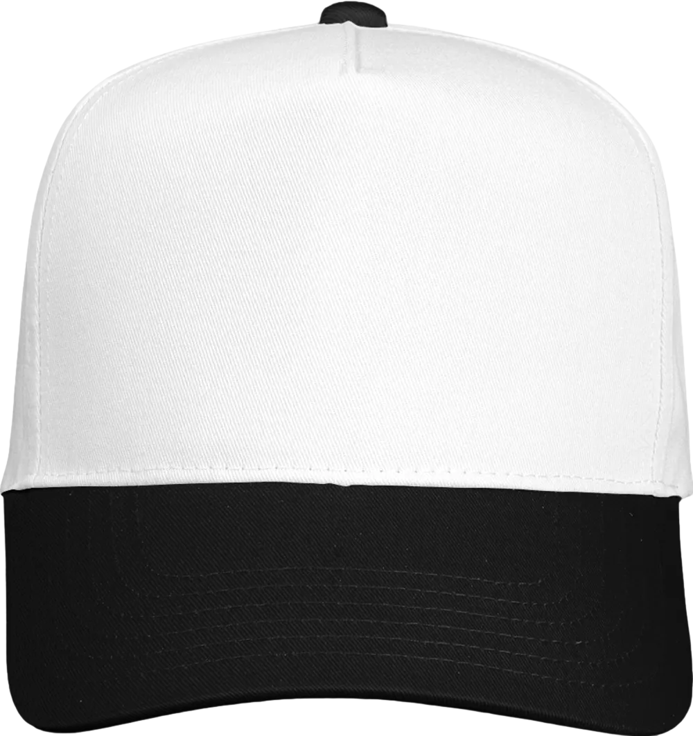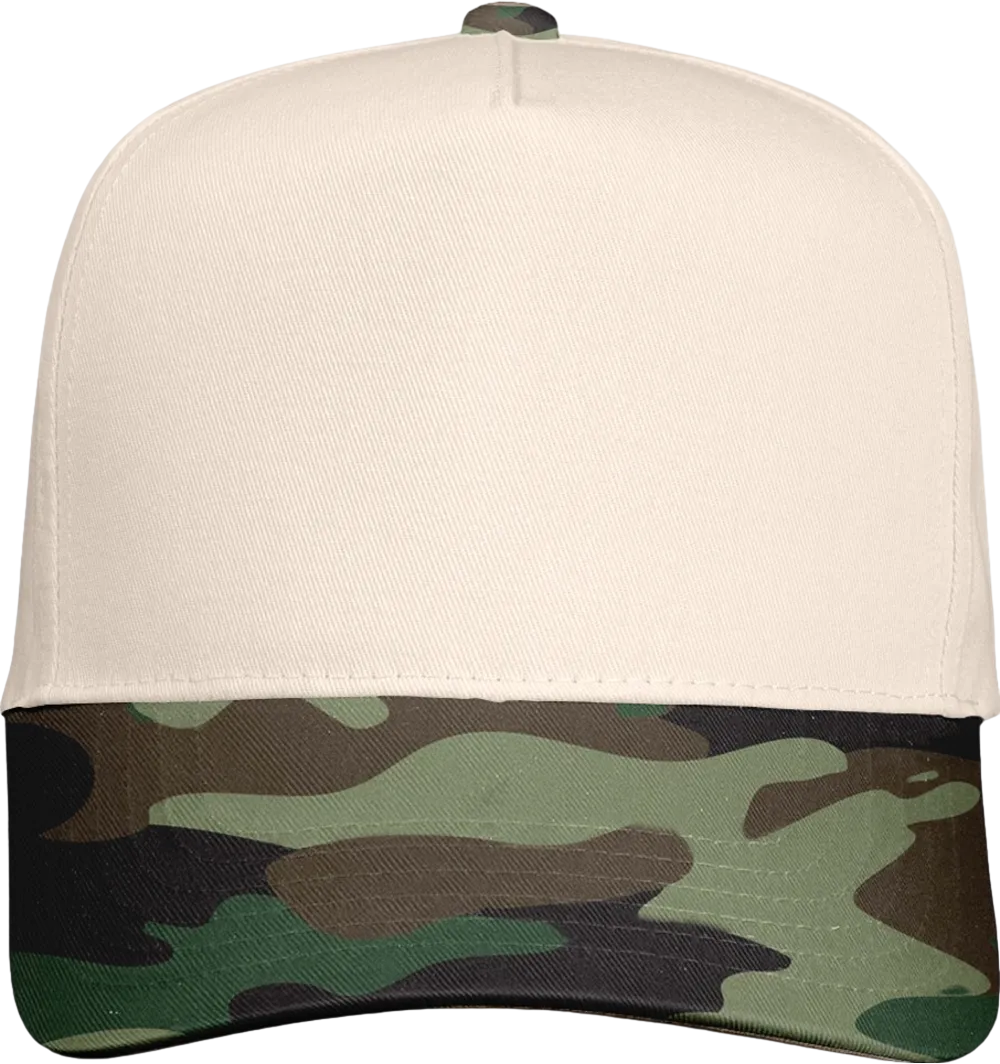 65/35 polyester/cotton twill Structured, five-panel, mid-profile Pre-curved visor Sewn eyelets Snapback closure Tear away label